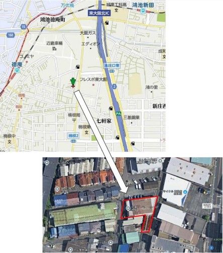 ※地図上の「対象地」は「〒577-0004 大阪府東大阪市稲田新町2丁目」の場所を指しています。実際の場所ではない場合がございます。詳しくはお問い合わせください。